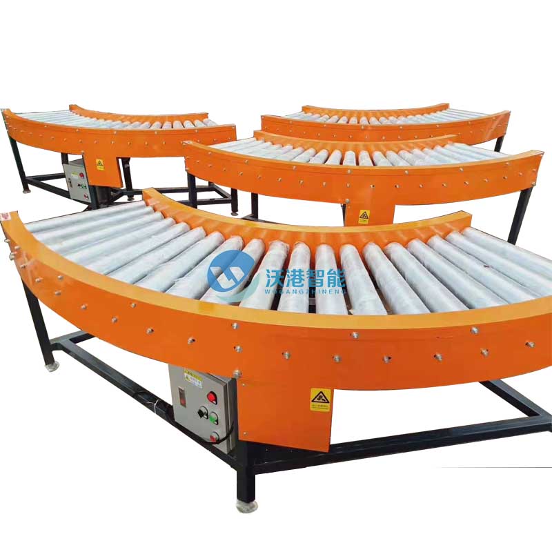 滾筒轉(zhuǎn)彎?rùn)C(jī)采用錐輥?zhàn)鲚d體,可以平穩(wěn)的將物品隨彎道輸送。彎道動(dòng)力輥筒輸送機(jī)與直線輸送機(jī)配合使用,